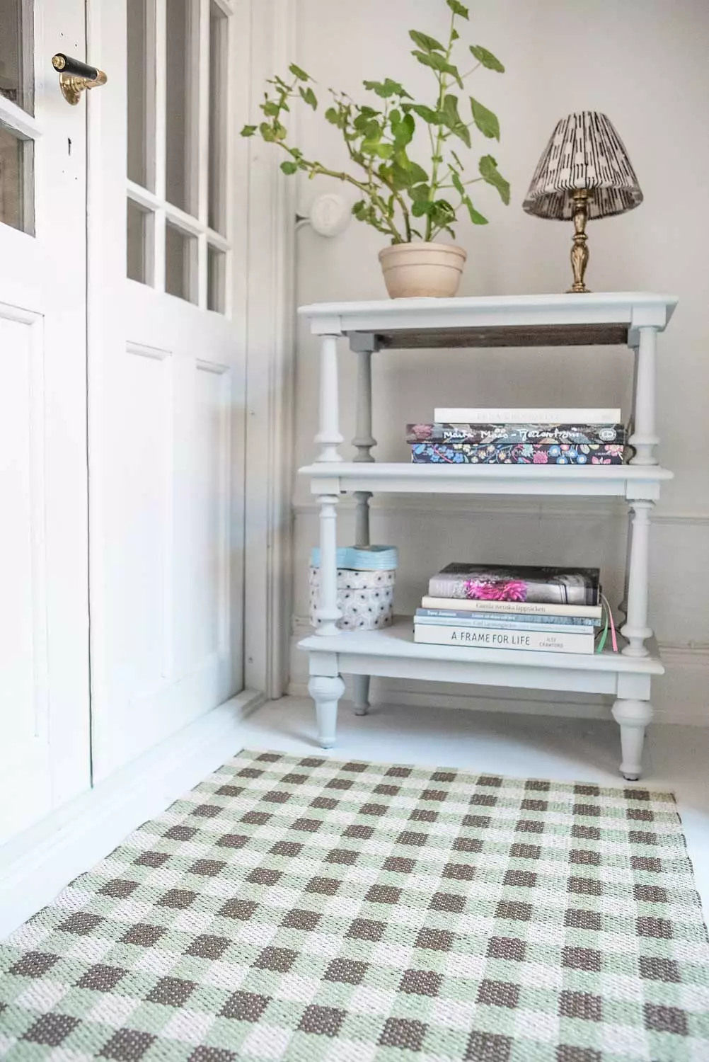 – Langlebige Kunststoffmatte mit stilvollem Karomuster.