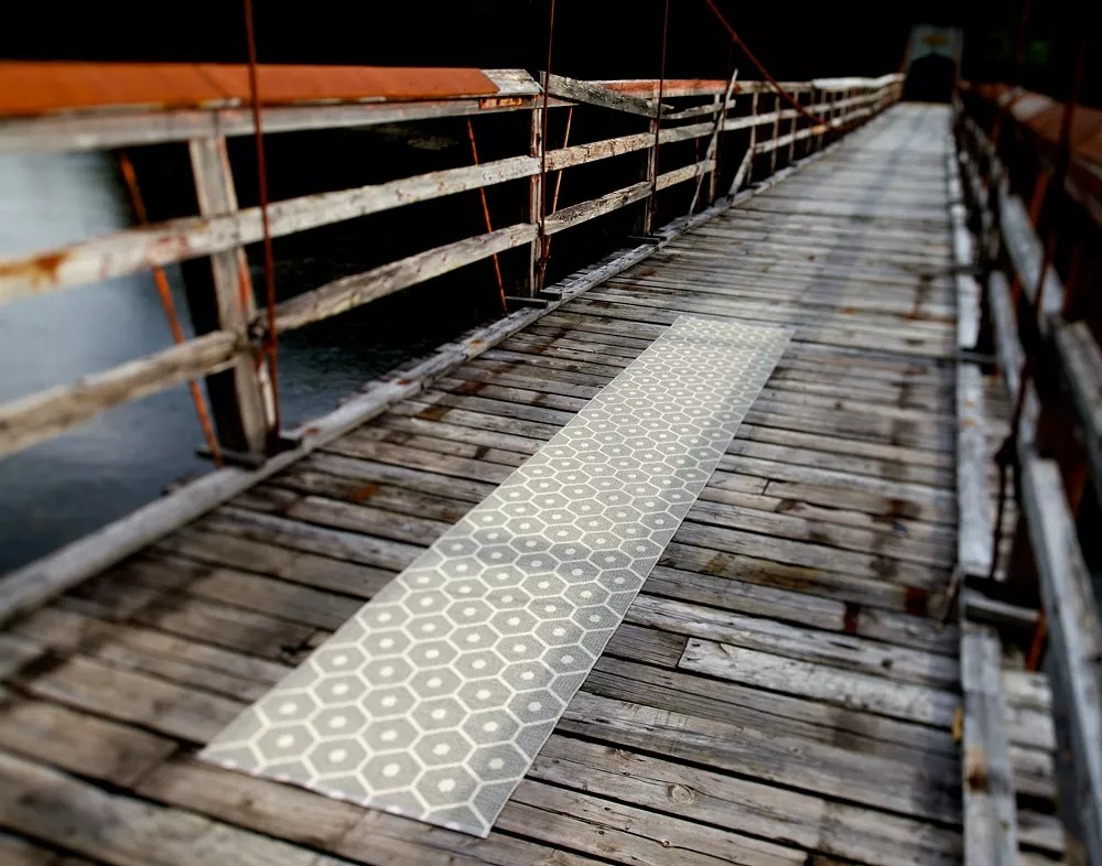 Honig ist ein Kunststoff-Teppich mit Pappelina Wabenmuster in verschiedenen Farben. Teppich Honig ist reversibel und die Farben sind auf der Rückseite umgekehrt. Dank der erstaunlichen Material arbeitet Honig sowohl innerhalb als auch außerhalb, wie es für leicht zu pflegen ist. Sehen Sie sich die Pflege-Beratung, wie Sie Ihren Teppich in der besten Art und Weise zu halten. Schwedisch Gislaved Folie AB ist der Hersteller von Pappelina ist aus dem schwedischen Kunststofffolie Teppichen. Keine umweltschädlichen Schwermetalle oder schädliche Weichmacher werden in der Herstellung der Teppiche verwendet. Pappelina folgt den Regeln, Vorschriften und Anforderungen von Schweden festgelegt und der EU, wo strenge Umweltregeln aufgrund der REACH-Verordnung gelten.