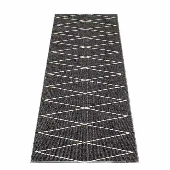 Max aus dem Schwedischen Lina, aus Schweden mit 90% schwedischer Kunststofffolie und 10% deutscher Kettfaden. Pappelina folgt den Regeln, Vorschriften und Anforderungen von Schweden festgelegt und der EU, wo strenge Umweltregeln aufgrund der REACH-Verordnung gelten. Max hat ein dezentes Muster aus Linien gekreuzt und bildet eine Grafik romb Muster über den Teppich. Erhältlich in verschiedenen Farbeinstellungen und Größen. Der Teppich ist reversibel und die andere Seite hat auch das graphische Muster mit vertauschten Farben.