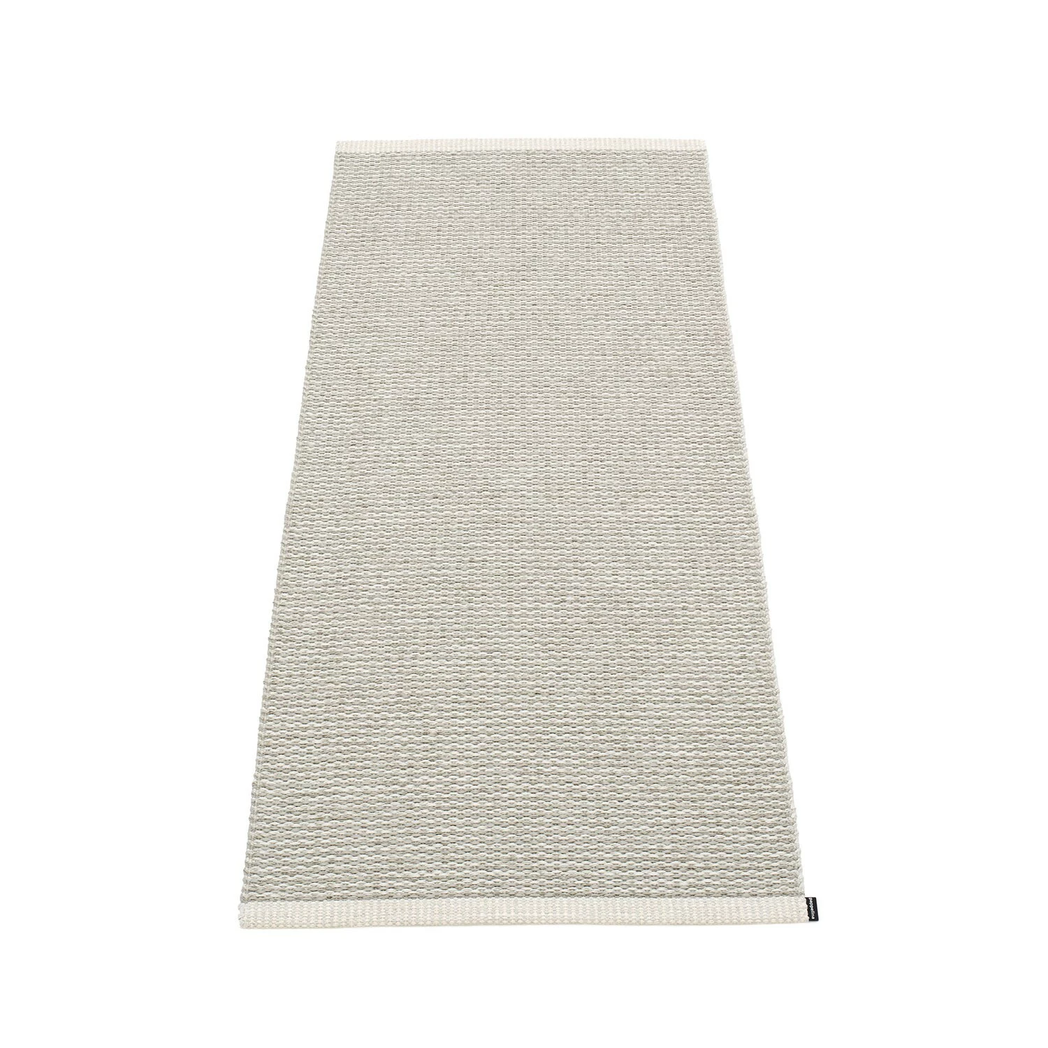 Mono Teppich wird aus PVC-Kunststoff und Ketten-Polyester, die in Schweden hergestellt werden, gewebt. Der Teppich kann von Hand oder in der Waschmaschine bei 30 °C / 86 gewaschen werden. Kein Schleudern oder Trocknen im Wäschetrockner. Im nassen Zustand lang ziehen, abtropfen lassen. Seien Sie sehr vorsichtig mit den Kanten.
