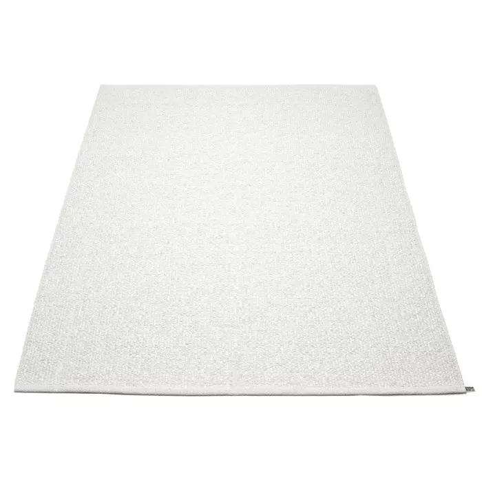 Svea Teppich in weißer Kunststofffolie gewebt. Metallic weiß gemischt mit mattweiße Farbe verleiht einen leichten schimmernden Effekt, der den Teppich Leben und Tiefe verleiht. Der Teppich ist leicht zu reinigen mit einem feuchten Tuch oder Saugen. Kann auch gewaschen Maschine sein. Pappelina Svea Teppich kann sowohl im Freien und in der Halle verwendet werden. Schwedisch Gislaved Folie AB ist der Hersteller von Pappelina ist aus dem schwedischen Kunststofffolie Teppichen. Keine umweltschädlichen Schwermetalle oder schädliche Weichmacher werden in der Herstellung der Teppiche verwendet. Pappelina folgt den Regeln, Vorschriften und Anforderungen von Schweden festgelegt und der EU, wo strengen Umweltregeln aufgrund der REACH-Verordnung gelten.