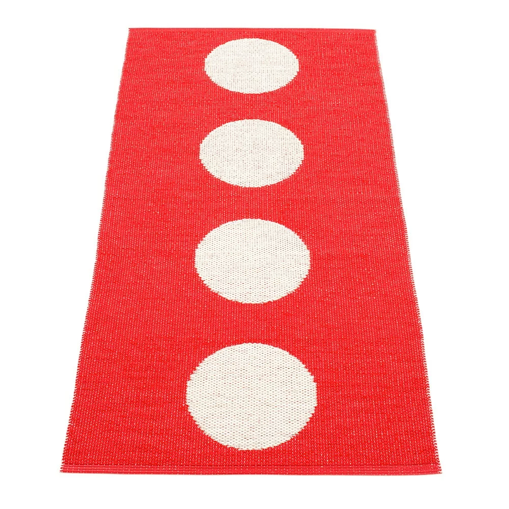 Vera ist eine Kunststoffmatte aus Lina, die mit ihren Punkten die Umgebung aufhellt, in der sie platziert wird. Vera kann sowohl außerhalb als auch innerhalb Umgebung, ideal für die Küche oder Balkon standhalten, wie es ist leicht zu warten und zu reinigen. Der Teppich ist reversibel, und die Rückseite hat eine umgekehrte Farbeinstellung. Schwedisch Gislaved Folie AB ist der Hersteller von Pappelina ist aus dem schwedischen Kunststofffolie Teppichen. Keine umweltschädlichen Schwermetalle oder schädliche Weichmacher werden in der Herstellung der Teppiche verwendet. Pappelina folgt den Regeln, Vorschriften und Anforderungen von Schweden festgelegt und der EU, wo strenge Umweltregeln aufgrund der REACH-Verordnung gelten.