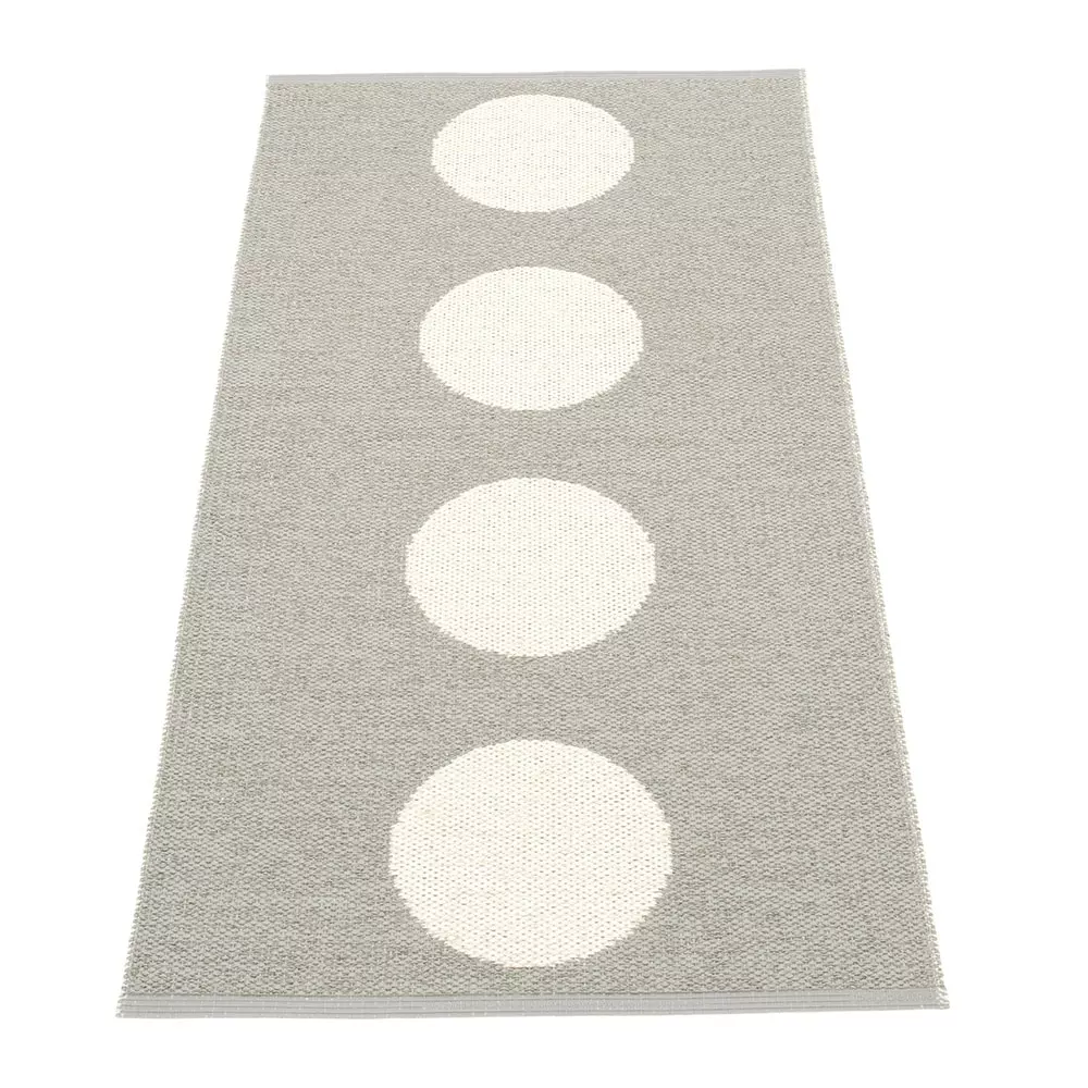 Vera ist eine Kunststoffmatte aus Lina, die mit ihren Punkten die Umgebung aufhellt, in der sie platziert wird. Vera kann sowohl außerhalb als auch innerhalb Umgebung, ideal für die Küche oder Balkon standhalten, wie es ist leicht zu warten und zu reinigen. Der Teppich ist reversibel, und die Rückseite hat eine umgekehrte Farbeinstellung. Schwedisch Gislaved Folie AB ist der Hersteller von Pappelina ist aus dem schwedischen Kunststofffolie Teppichen. Keine umweltschädlichen Schwermetalle oder schädliche Weichmacher werden in der Herstellung der Teppiche verwendet. Pappelina folgt den Regeln, Vorschriften und Anforderungen von Schweden festgelegt und der EU, wo strenge Umweltregeln aufgrund der REACH-Verordnung gelten.