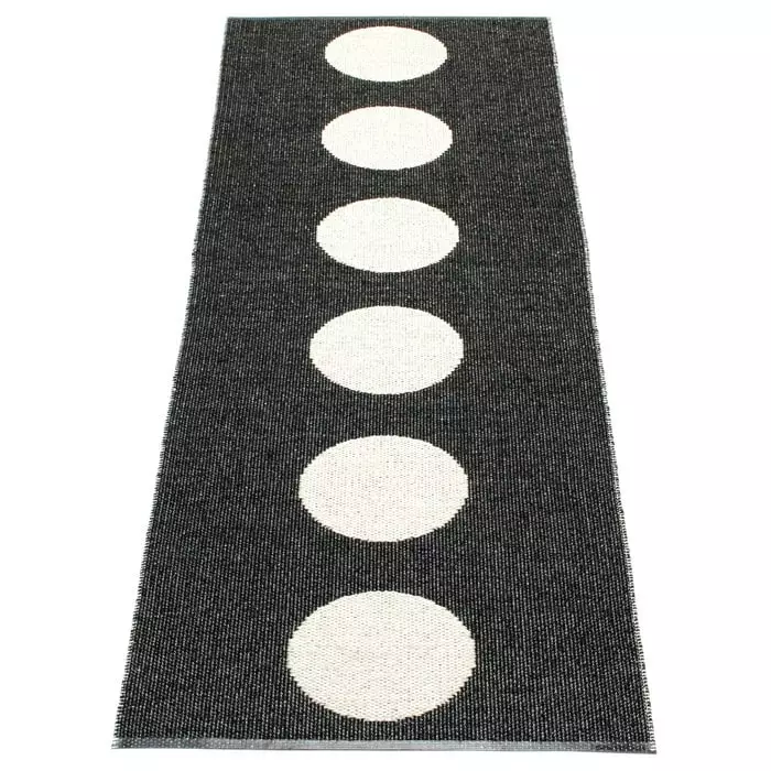 Vera ist eine Kunststoffmatte aus Lina, die mit ihren Punkten die Umgebung aufhellt, in der sie platziert wird. Vera kann sowohl außerhalb als auch innerhalb Umgebung, ideal für die Küche oder Balkon standhalten, wie es ist leicht zu warten und zu reinigen. Der Teppich ist reversibel, und die Rückseite hat eine umgekehrte Farbeinstellung. Schwedisch Gislaved Folie AB ist der Hersteller von Pappelina ist aus dem schwedischen Kunststofffolie Teppichen. Keine umweltschädlichen Schwermetalle oder schädliche Weichmacher werden in der Herstellung der Teppiche verwendet. Pappelina folgt den Regeln, Vorschriften und Anforderungen von Schweden festgelegt und der EU, wo strenge Umweltregeln aufgrund der REACH-Verordnung gelten.