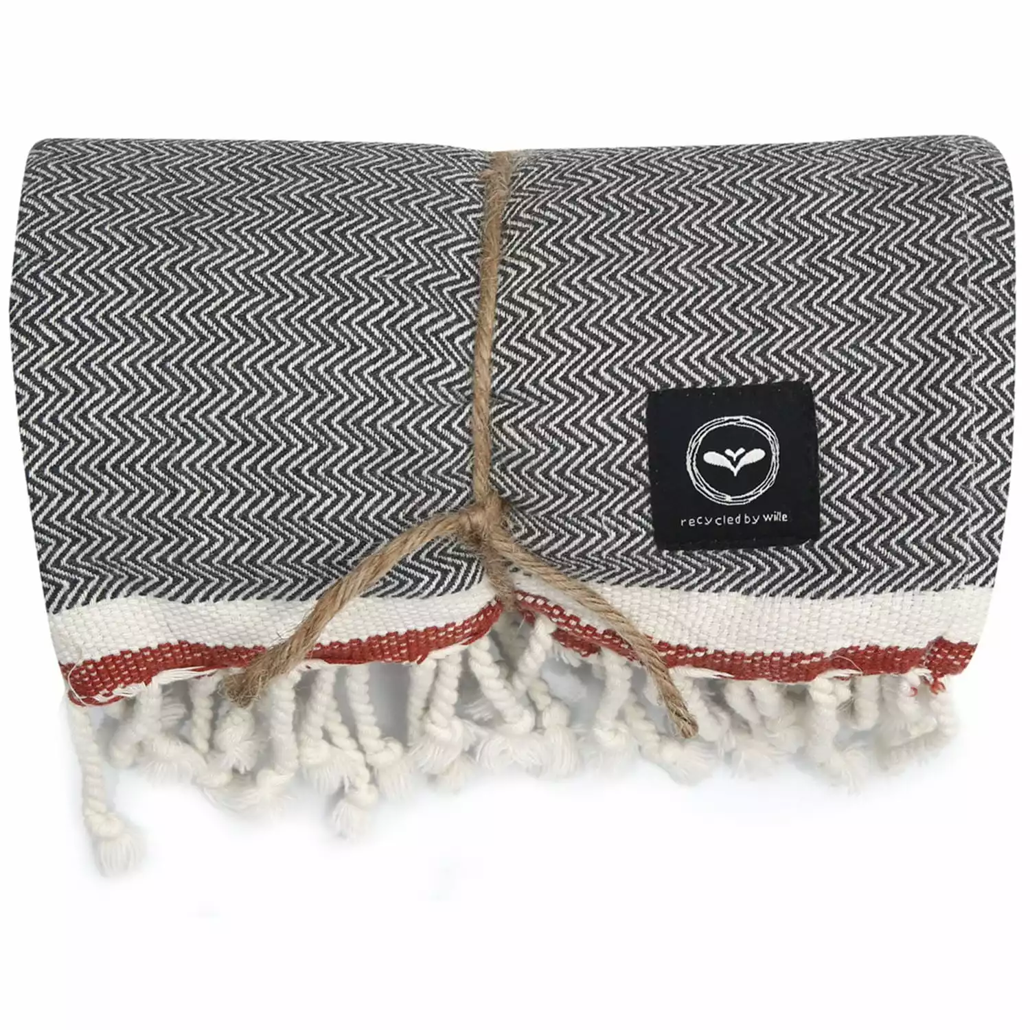 Recycled By Wille Badlakan Hamam Amasra 90×190 Cm Olivegrön/beige/rost Badetuch Dunkelgrau